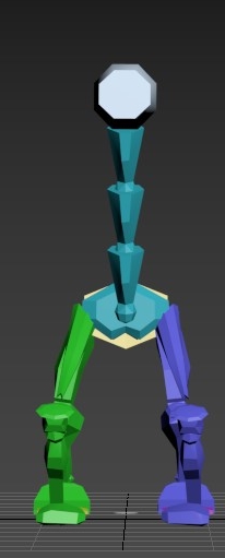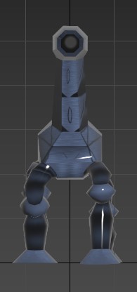 The walking turret was one of the main enemies in N.O.V.A Escape. I discussed its appearance with Zach, and we decided on it having a quadrupedal, alpaca-like design. The turret was modeled in 3ds Max, which I also used to skin, rig, and animate it. The textures were made in Adobe Photoshop with UV maps created in 3ds Max.
