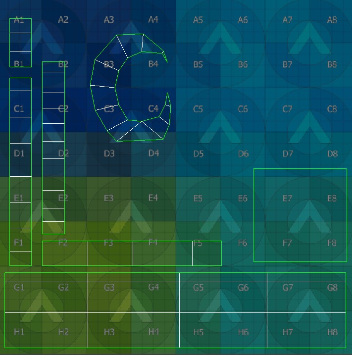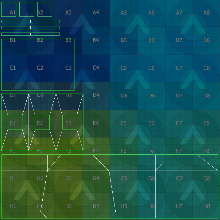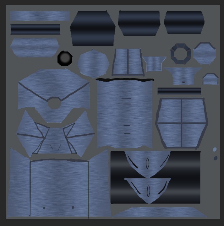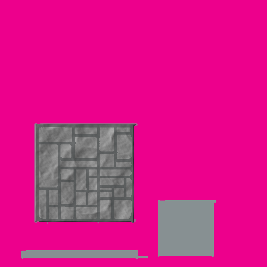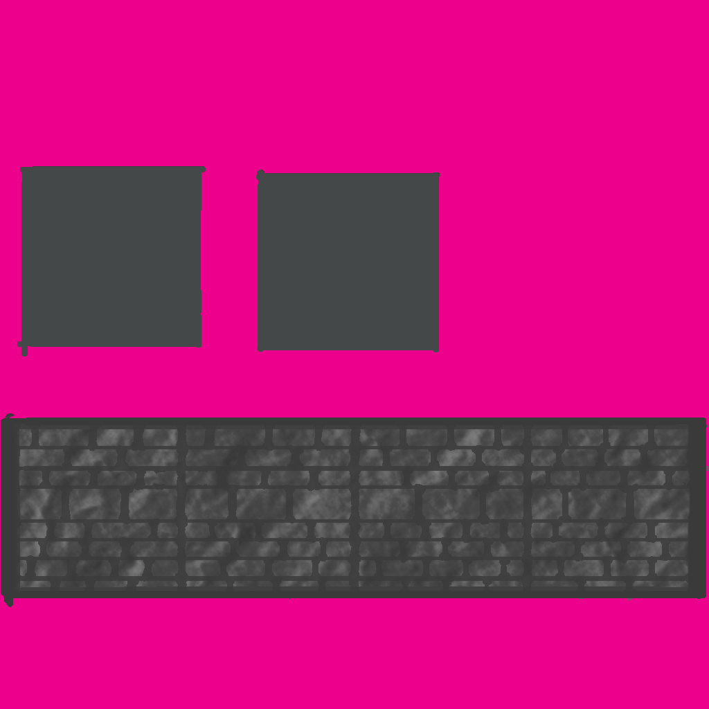 These are the floor, wall and ceiling blocks I made for Eden. Since these were simple blocks made in 3ds Max, I focused more on texturing them. Made in Adobe Photoshop, I drew dark gray lines over a lighter shade of gray to make the Tetris-like pattern on the bricks. To make the rocky appearance of the bricks’ texture, I used a difference cloud and emboss filter. Most of the faces on the floor and ceiling blocks I just left a dark gray, as the player would only see one side of both blocks in game. The same can be said for the top and bottom faces of the wall block.