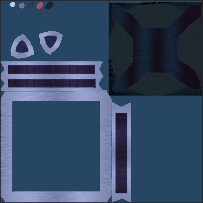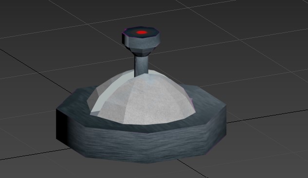 This is the concept for the ceiling turret in N.O.V.A Escape. This was considered because of how well it fit in the game. I modeled the ceiling turret in 3ds max and made the texture in Photoshop using a UV map I created in 3ds max. Later on, I edited the turret’s texture to make it look more metallic. I also made a custom skeleton for the ceiling turret, and rigged and skinned it, all using 3ds Max.
