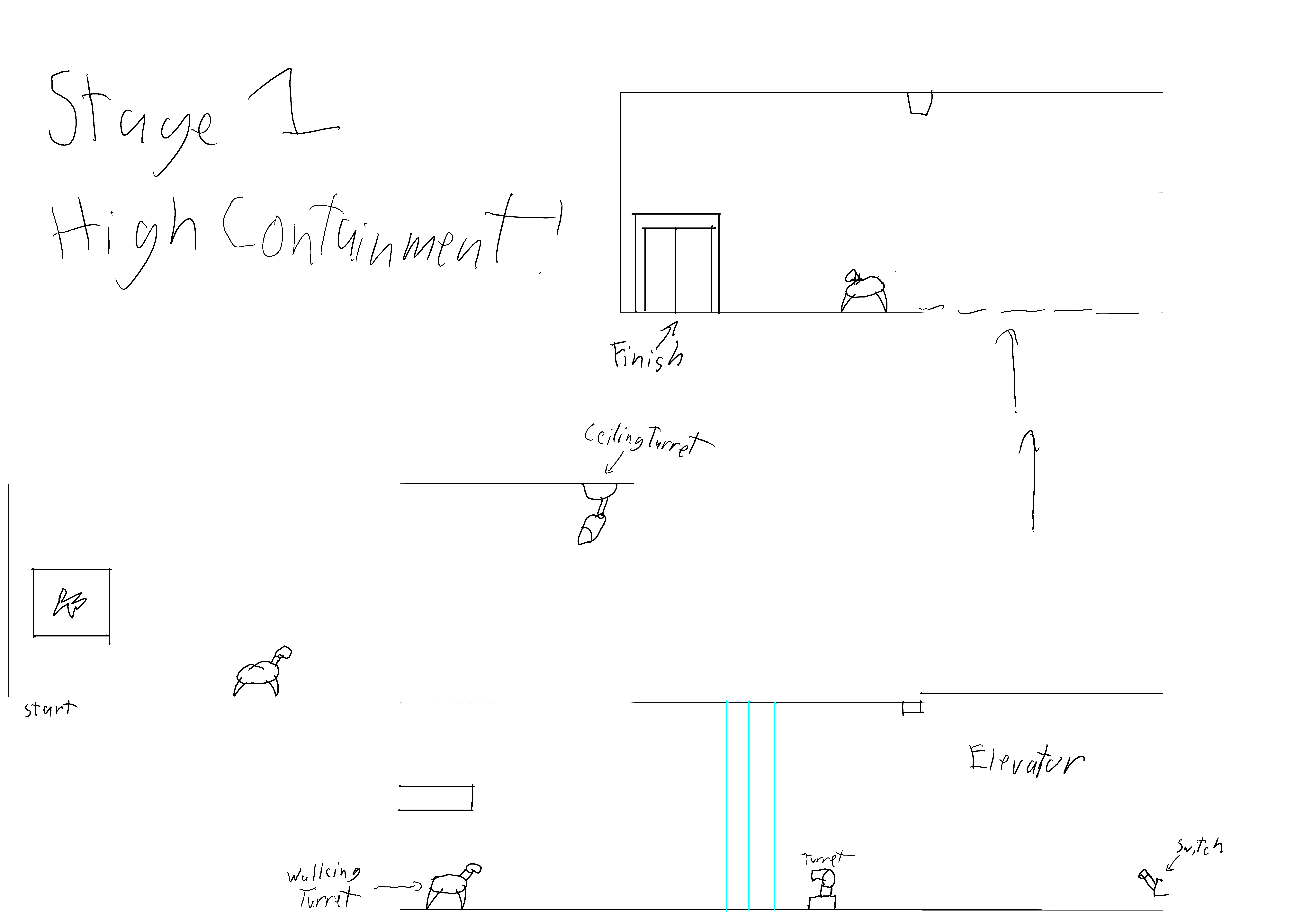 I created the roaming enemies and the stasis chambers used as exits. Both of which were made using 3ds Max. I modeled, skinned, rigged, textured, and animated the walking turret myself. There’s also a crate prop that wasn’t used in the game. I also worked on the concept sketches for the levels.